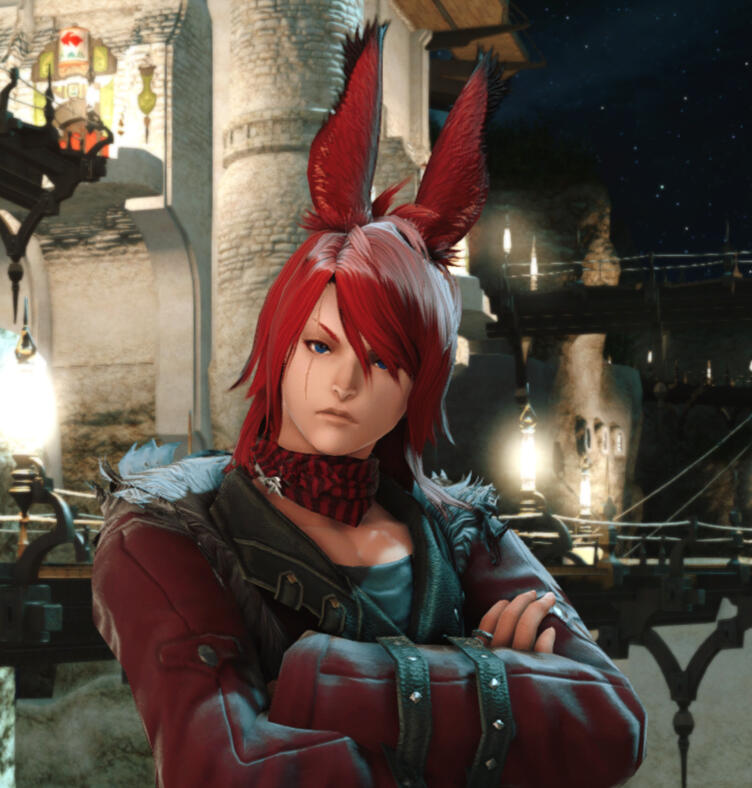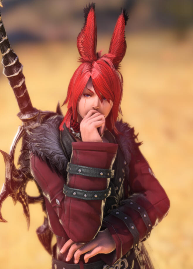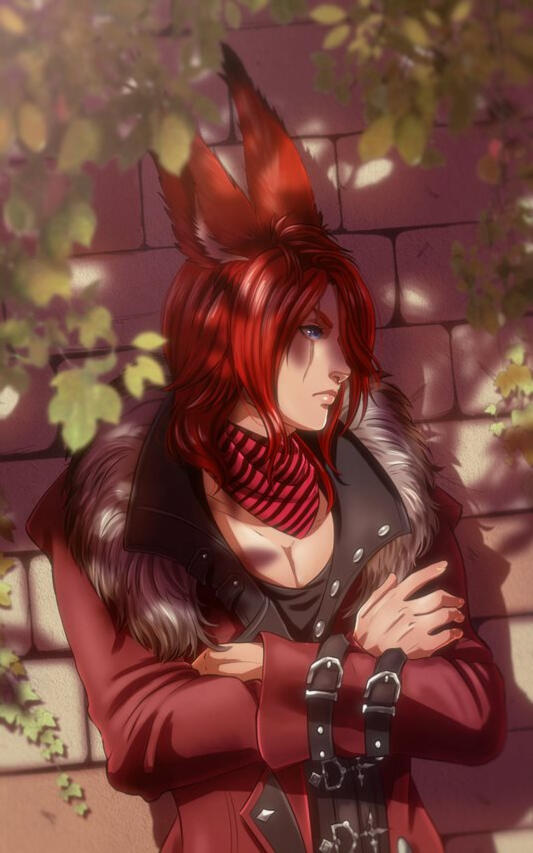 A young lost orphan, Aulbaux was chanced upon by an elezen couple who were returning from outside the city walls. Taking great pity on the tiny Viera face down in the snow, they smuggled him into the city, and despite their poor standing, plus the fact they had a biological child, they decided to raise him as their own, giving him the name "Aulbaux Sulie." However, leaving the house was a problem, since Ishgard had next to no Vieras around, he would stand out pretty easily, and with how much the people of Ishgard distrusted foreigners, it didn't bode well for him. As a result, he was rarely able to leave the tiny home, but his new parents were able to still provide him and his brother with some sort of education, no matter how minuscule it was.When he was 12, his brother (now 17) left to begin training as a Dragoon, hoping to raise the family's name and standing with his future deeds in battle. Alas, this was not to be. A year into the training, the camp was swarmed by dragons, and he perished in the ensuing conflict. He still remembers the sound of his mother's cries when she was told the news.When he was 16, his parents were killed at the request of a highborn, who claimed that he heard them decrying the name of Halone. They were arrested and excuted within the day. Aulbaux, not being able to fight, was unable to offer himself as a champion for his father's trial by combat request, and watched helplessly as his parents were slaughtered in the courthouse.A couple of months later, a 17 year old Aulbaux, aimlessly wandering around Ishgard, stumbled upon something, which upon closer inspection, seemed to be a small stone with a purple, red and black colouring. Curiosity getting the better of him, he picked up, eyes widening in both confusion and surprise as it started to glow in his hand. From there, he heard a voice coming from the shadows that caught his attention. Turning his attention towards the direction of the voice, he watched as a figure draped from head to toe in armour approached him, which made the teen Viera nervous. Though there was no need for this, as the figure explained that what Aulbaux was holding was a 'Soul crystal', and asked Aulbaux if he would like to train as a Dark Knight. Figuring that it would be better then being vulnerable, weak and alone, Aulbaux accepted the offer. The next few months were spent training, unlocking the abilities contained within and him spending plenty of time trying to research the history of Dark Knights, often with no success unless it came from his new teacher.Half a year later, he found the guy was responsible for the death of his parents and challenged him to a fight to the death. The elezen male, upon seeing Aulbaux, laughed before accepting, believing that'd be an easy fight. After all, Aulbaux wasn't the most imposing figure, in the ensuing fight, he got caught with a blade to his face, which led to the scar over his eye. Seeing this, the man laughed, starting to taunt him over his parents death. This was a breaking point. Blood pouring down his face, he pushed himself up, overcoming the injury and allowing the darkness to build up inside him, now uncaring as he mercilessly slaughtered the other man. Afterwards, he collapsed to his knees, eyes closed tight, fighting against the darkness. While it came close to fully over taking him and killing him as a result, Aulbaux was able to temper these emotions, now understanding where a Dark Knight's true power came from.Upon turning 18, he decided to pack up what little he owned, and left Ishgard to become a fully fledged adventuer. Both to explore the world outside the city walls and now to help a greater number of people in Eorzea. While he wasn't able to protect his family, they had imprinted on him a desire to help others.Now 22, he still wanders Eorzea, undertaking commissions in all places across Hydaelyn, and doing what he can to help people in need, while still trying to find out what he can about his early years before ending up in Ishgard, along with dealing with his internal conflicts.